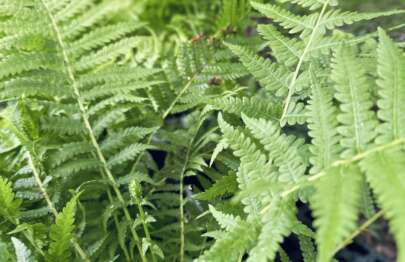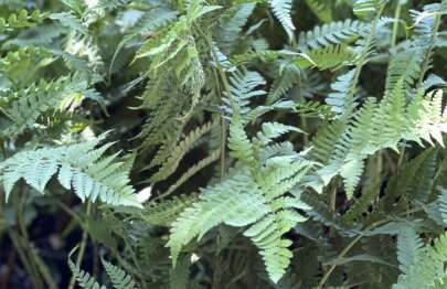 In full to part shade and average to moist soil, Hay Scented Fern will happily grow, spreading slowly over time by rhizomes. With enough consistent moisture, sunny conditions will be tolerable for this native fern and in shade she can deal with relativley dry environments. Lacy fronds, upright and arching with contrasting stems of reddish hues, lend delicate texture to a landscape planting. Ecological benefits include cover for wildlife and larval hosting to two moth species.