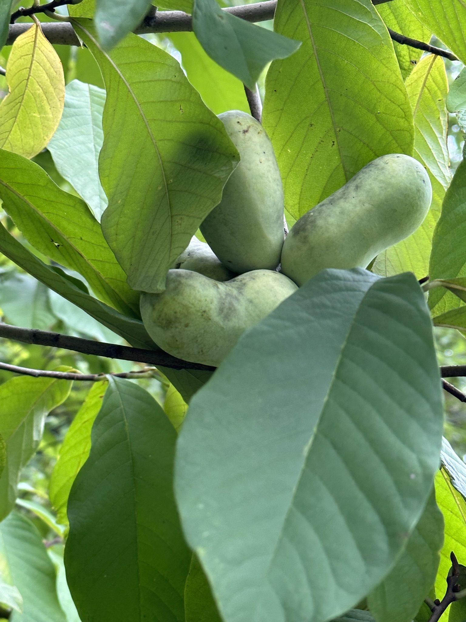 This small Native tree is prized for its large edible fruit. Relished by many animals, with a banana-custard like flavor, they are a good source of Vitamins A and C. The Pawpaw is a larval host for the Zebra Swallowtail and Pawpaw Sphinx. It has a unique tropical appearance and makes a good specimen as well as an understory tree.’Mango’ is valued as a vigorous grower, bearing large tasty fruit as a young tree. Fruit ripens late in season.
