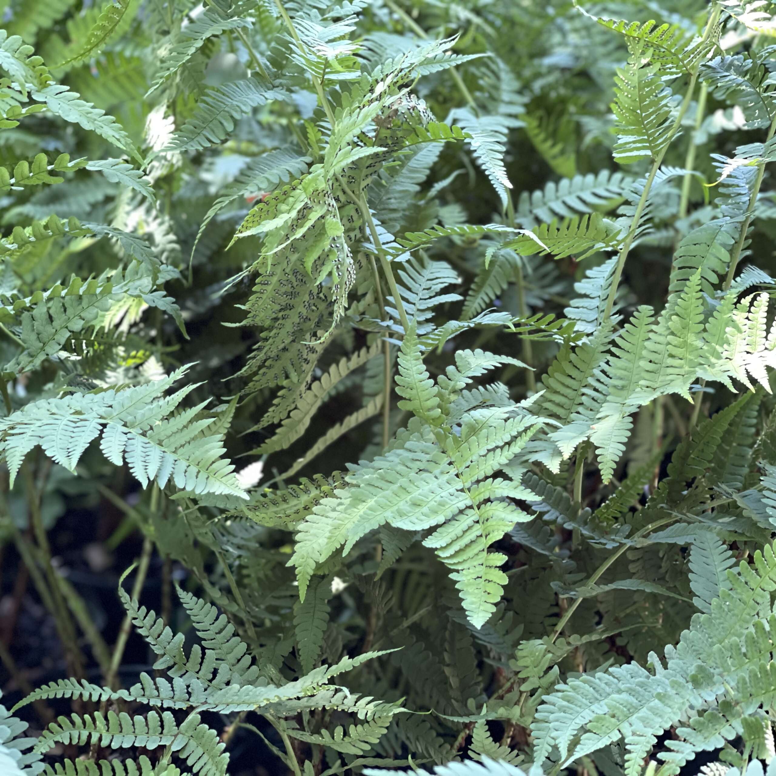 Marginal Wood Fern prefers average to moist, well drained, rich soil in full to part shade. This evergreen beauty occurs in arching vase shaped, non spreading, clumps. The fronds are leathery and deeply cut, providing winter interest and shelter for wildlife. Wood Fern is larval host to 3 moths in our area, Graceful Ghost Moth, Ghostly Fern Moth, and Marsh Fern Moth. Songbirds use ferns in nest construction.