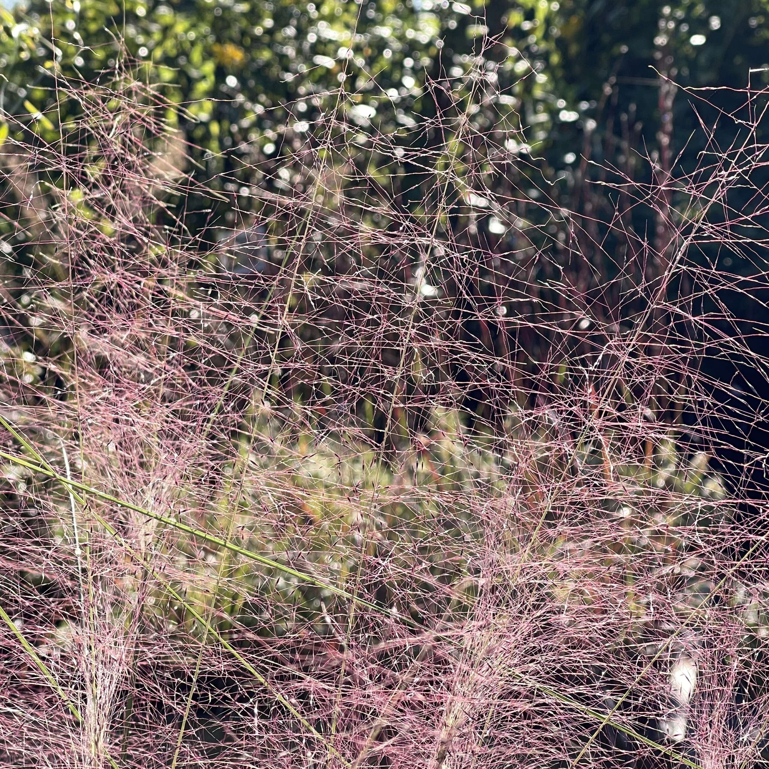 The fine textured wiry foliage of this beauteous native grass forms attractive mounds in summer. In fall the flower panicles burst into a showy pink cloud floating in the air. A larval host to 4 species of moth caterpillars, Muhly Grass also provides seeds and cover for birds.
